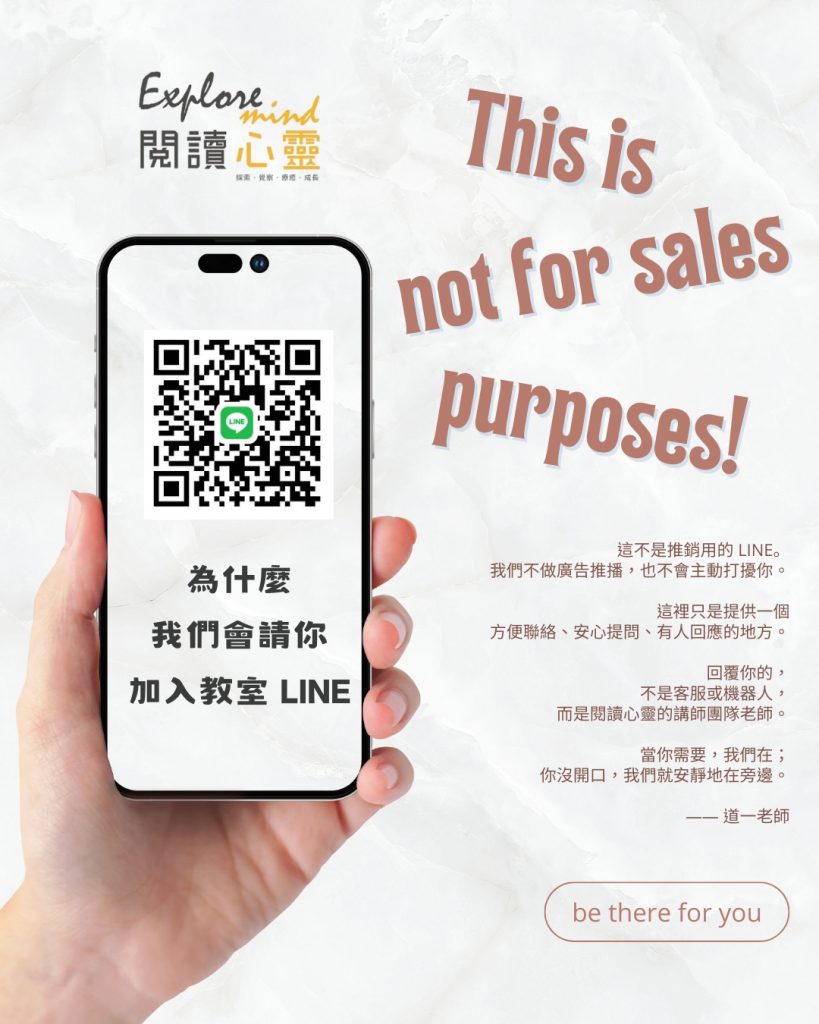 你好~歡迎加入閱讀心靈療癒推廣中心 LINE 好友,