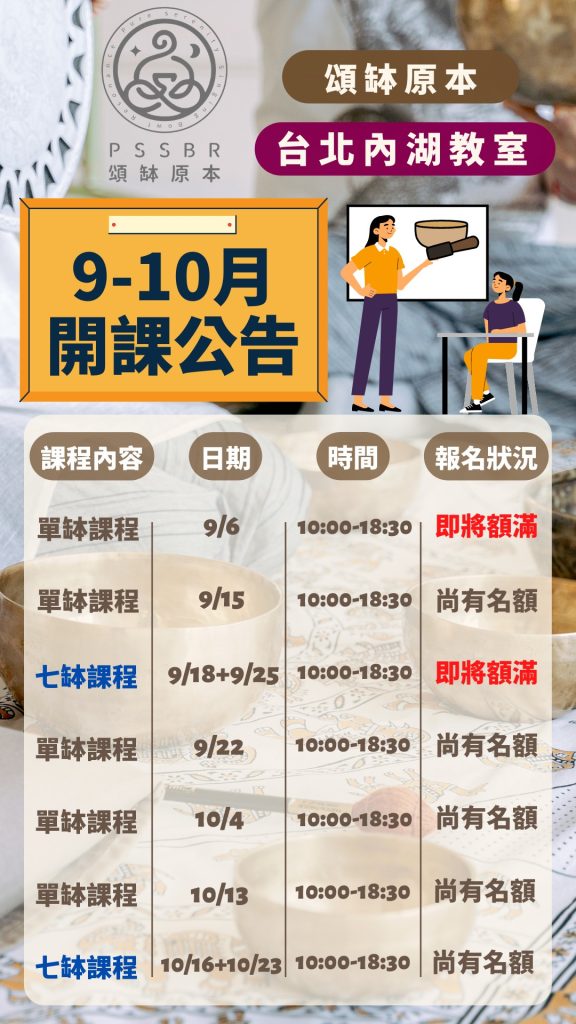 『頌缽原本』內湖教室-0829 『頌缽原本』音療師 單缽/七缽 證照班|110年9-10月開課公告|