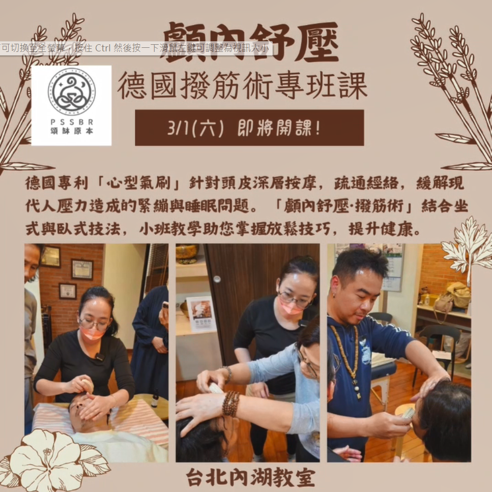 頌缽原本內湖教室|顱內舒壓•德國撥筋術專班課 時間: 2025/3/1(六) 10:00-18:00 報名連結