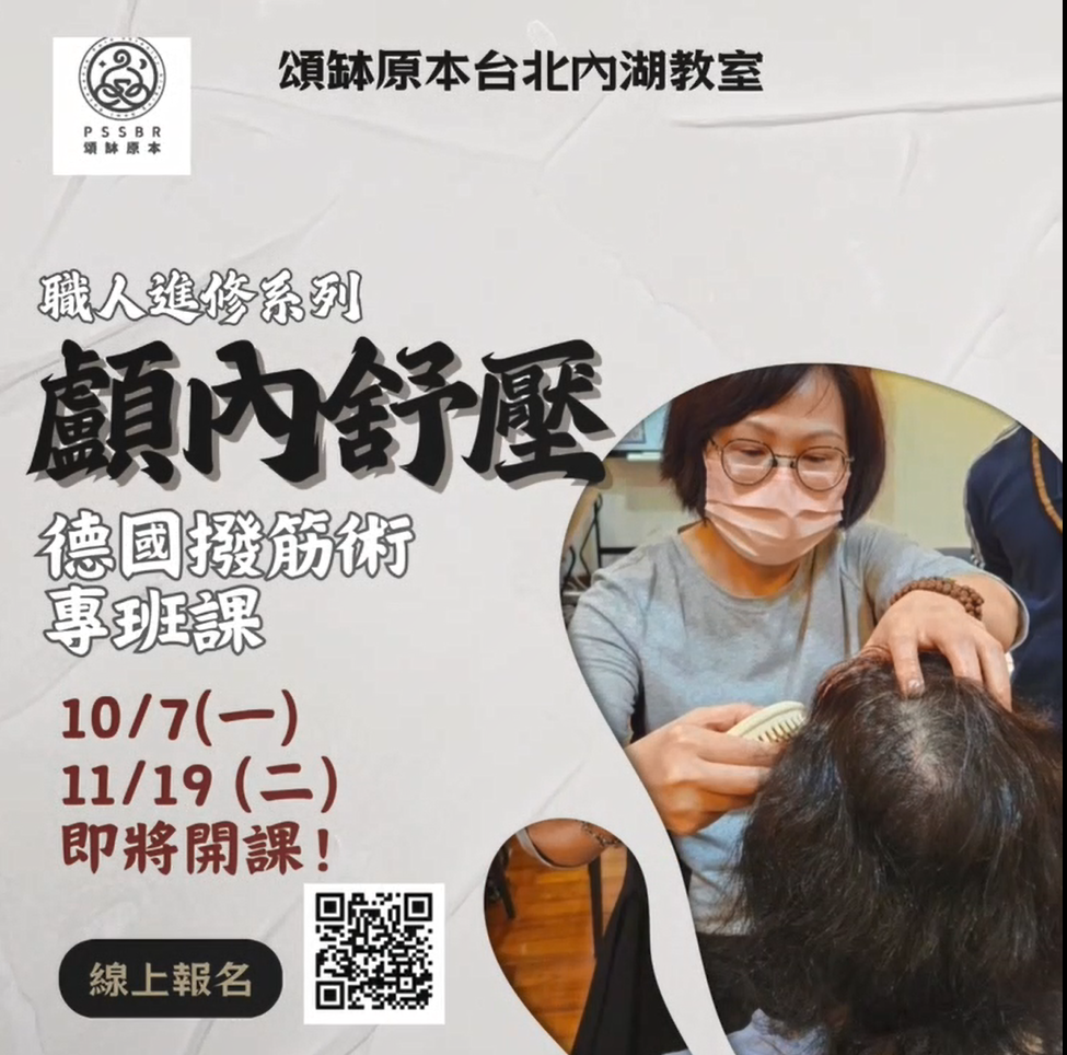 閱讀心靈台安教室,職人進修系列–德國撥筋術9月課程熱烈招生中,想要釋放頭部、臉部壓力的朋友,或是想